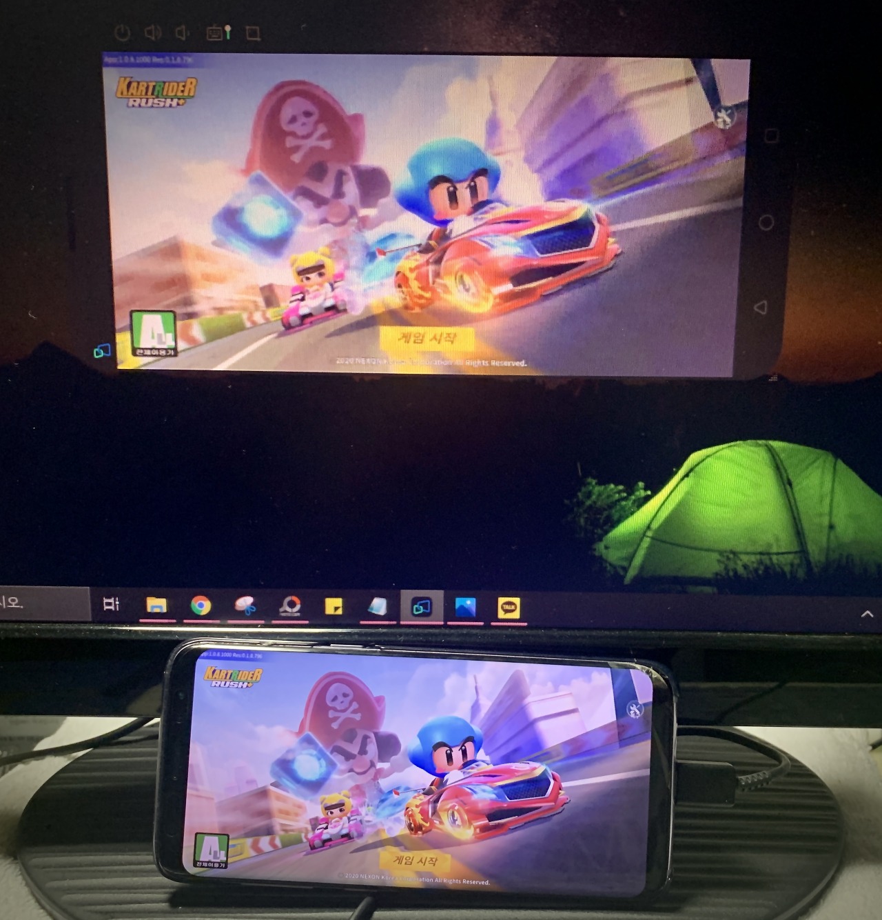 여기까지 모바일과 PC를 완벽하게 하나의 기기처럼 연결을 시켜보았는데요. 모든 세팅이 끝나다면 이제부터 카트라이더 러쉬플러스를 실행시켜 모바일이 아닌 키보드와 마우스로 게임을 플레이 해보도록 하겠습니다.